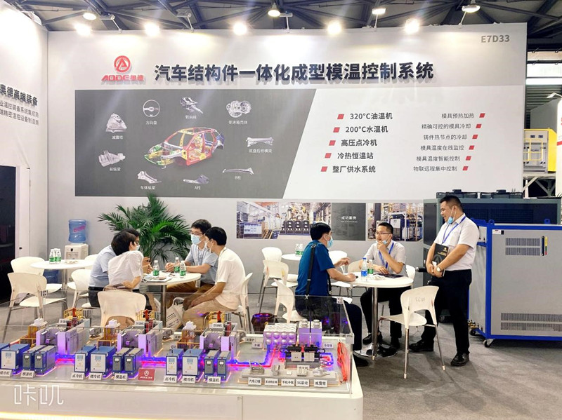 奧德推出“汽車結構件一體化成型溫控系統”,攜320℃超高溫油溫機,200℃超高溫水溫機、壓鑄專用冷熱溫控系統、工業風冷冷水機亮相本次壓鑄展。